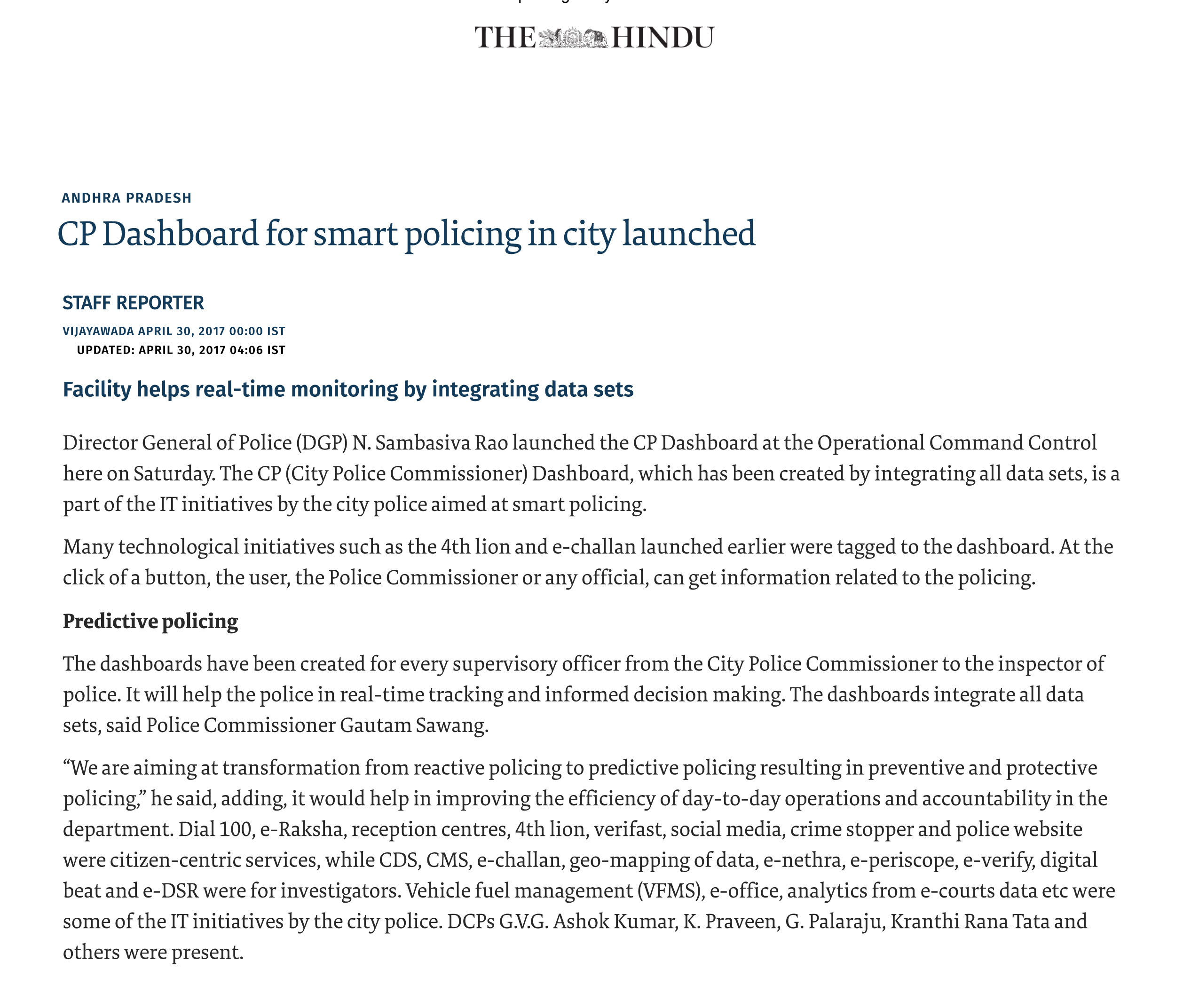 eRaksha Events Media Coverage RapidCop TrakitNow Press: eRaksha launch in Vijayawada - THE HINDU by TrakitNow April 30, 2017 chat_bubble_outline0